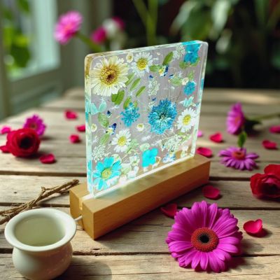 Egyedi, kézzel készített lámpa, amely a természet színeit és formáit