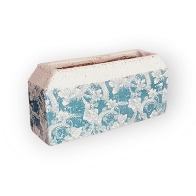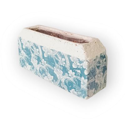 Ez a keskeny, nehéz kerámia kaspó ideális választás teraszra, ablakpárkányra vagy asztalközépre. Fakó kék tónusa és finom virágmintája tökéletes harmóniát teremt természetes vagy szárított virágokkal is. Különösen jól mutat hosszúkás asztaldekorációban vagy többsoros kompozícióban.