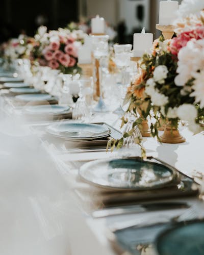 • Asztaldekoráció – a főasztalra és minden vendégasztalra, választható stílusban